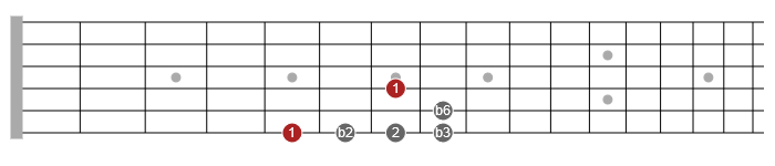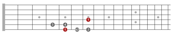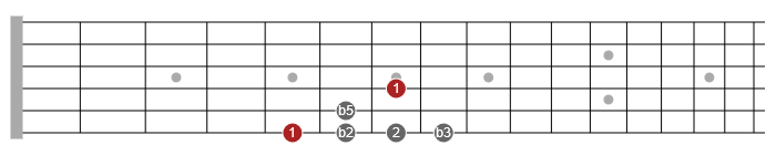 In this section, you’ll find the starting pattern for each of the 330 pentatonic scales possible from permutating all available intervals into sets of five notes with the same root. As I mentioned earlier, it’s not necessary to learn all these scale shapes as the practice of finding groups of intervals and playing combinations you probably haven’t explored before will do wonders for your improvisation skills. I think you’ll find it liberating for your fingers as well as your mind.